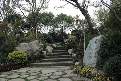 整个浙江园依托一山一水,构筑了整个展园的骨架,表达了浙江地区青山秀水、人杰地灵的风情地貌。