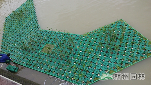 此生态浮床不仅具有美化环境的功效,更有净化水体的功能。为使生态浮床发挥更显著的作用,杭州园林的研发中心正对其进行进一步的研究开发。相信随着研发力度的不断深入及技术的提升,景观型生态浮床的应用将更加广泛和高效。
