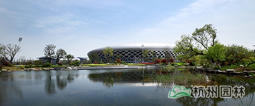 “徐州奥体中心主体建筑风格采用现代建筑,气势宏伟,庄重大方,时尚有活力。普通的园林风格无法满足其要求,选择怎样的配套景观风格是一个很大的难度。”项目现场负责人夏修智说,“经过与甲方、设计等多方沟通及论证,最终采用了杭州园林提出的中国现代园林与现代建筑相互结合的优化方案进行施工,使景观效果与奥体中心建筑完美融合,营造出亦古亦今、中西混搭,整体布局恢弘大气、局部婉约精致的现代园林风情。”