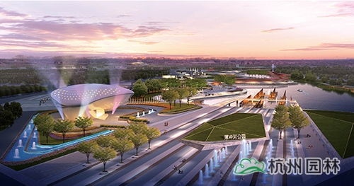 渡航广场:钻石形状的绿坡结合船型夹板造型,寓意破浪前行的渡船,象征肥西人民开拓进取的时代精神。