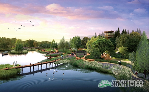 乐活园艺主题区:以家庭园艺花园为主,是公园的圩田湿地体验中心,水道如巷,河汊如网的圩田农艺景观,呈现出田园牧歌般的意境。包含飘带走廊、水荡花田等景点。