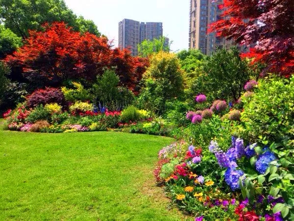 李寿仁则提出了干净、秩序、健康、协调的四美标准,用叶色、质感不同的木本植物,通过团植、留白、景深、层次等多种艺术手法打造出低维护成本的木本花境,高低错落、颜色丰富,景观效果俱佳。