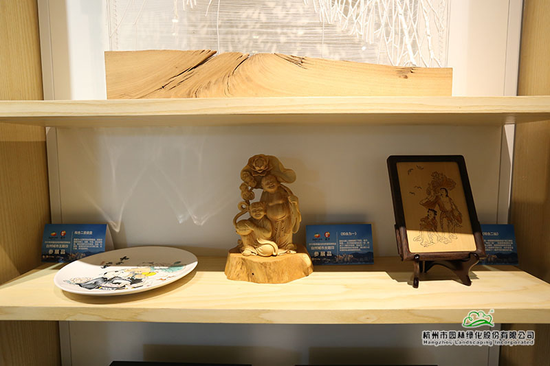 负一层展厅内,不仅循环播放着台州城市形象、旅游景区、山海风光、生态文明建设、“两山”理论成果的宣传片,还展示了台州特色的茶叶、乌药黄精、杨梅制品、无患子系列产品、木竹工艺品等特色林产品。