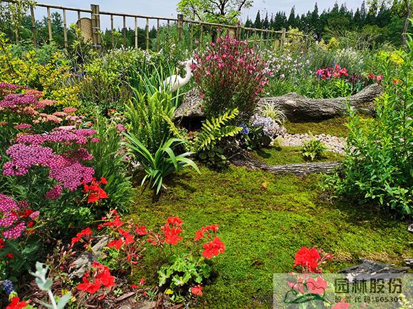 《泽•颂》的设计将花境与湿地相结合,以花之灵、水之灵、鸟之灵为主线,以木本花境、观赏草混搭宿根植物、枯木苔藓等植物景观模式,模拟自然湿地的灌丛、草甸、藓类等不同类别湿地景观,营造繁花似锦的美丽场景,营造出“归棹茭芦苇岸,白鹭锦鳞为伴,闲卧水云间,但见碧波清浅”的幽雅湿地景观。