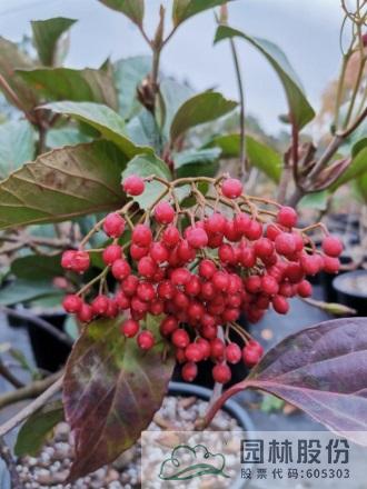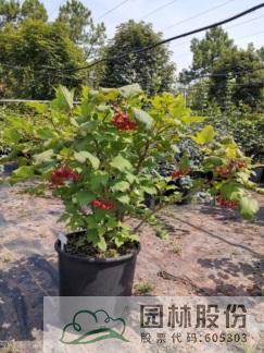 忍冬科荚蒾属,落叶灌木,高可达4米。叶掌状,通常三裂,秋季叶色转红,特别艳丽。聚伞花序白色,不孕花末期会呈现粉色,花径较大,花药呈黄色,花期4-5月。果实较大,形似樱桃,红艳诱人,给人以强烈视觉冲击力,能形成园林观赏的视觉焦点。观果期长,可达4个月之久。适应性强,通常可自然成形。一年施肥3次,早春萌芽前,花后及秋季。适合工程应用与庭院观赏。