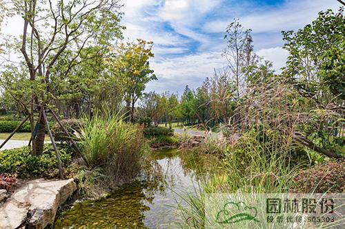 运河湾公园是一个以海绵城市理念打造的景观公园,从旱溪、湿塘等形式丰富的海绵设施,到各类透水铺装材料的应用,海绵城市理念贯穿于公园建设的各个环节。
