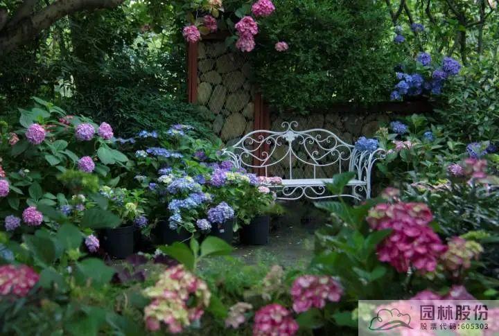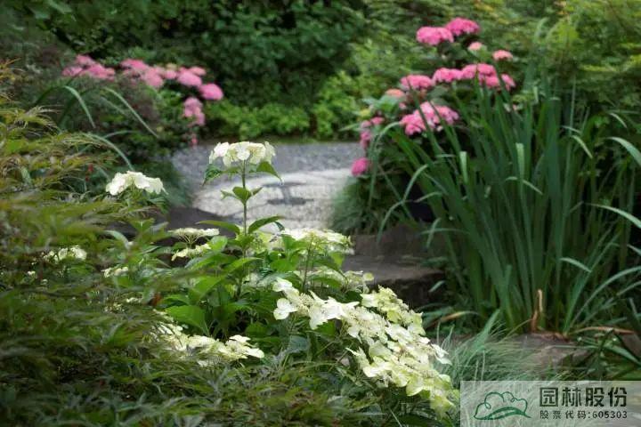▲8868·8868(中国)官方网自主选育的‘青山’系列绣球在画境·青山湖花园中心室外景观展示区中的应用