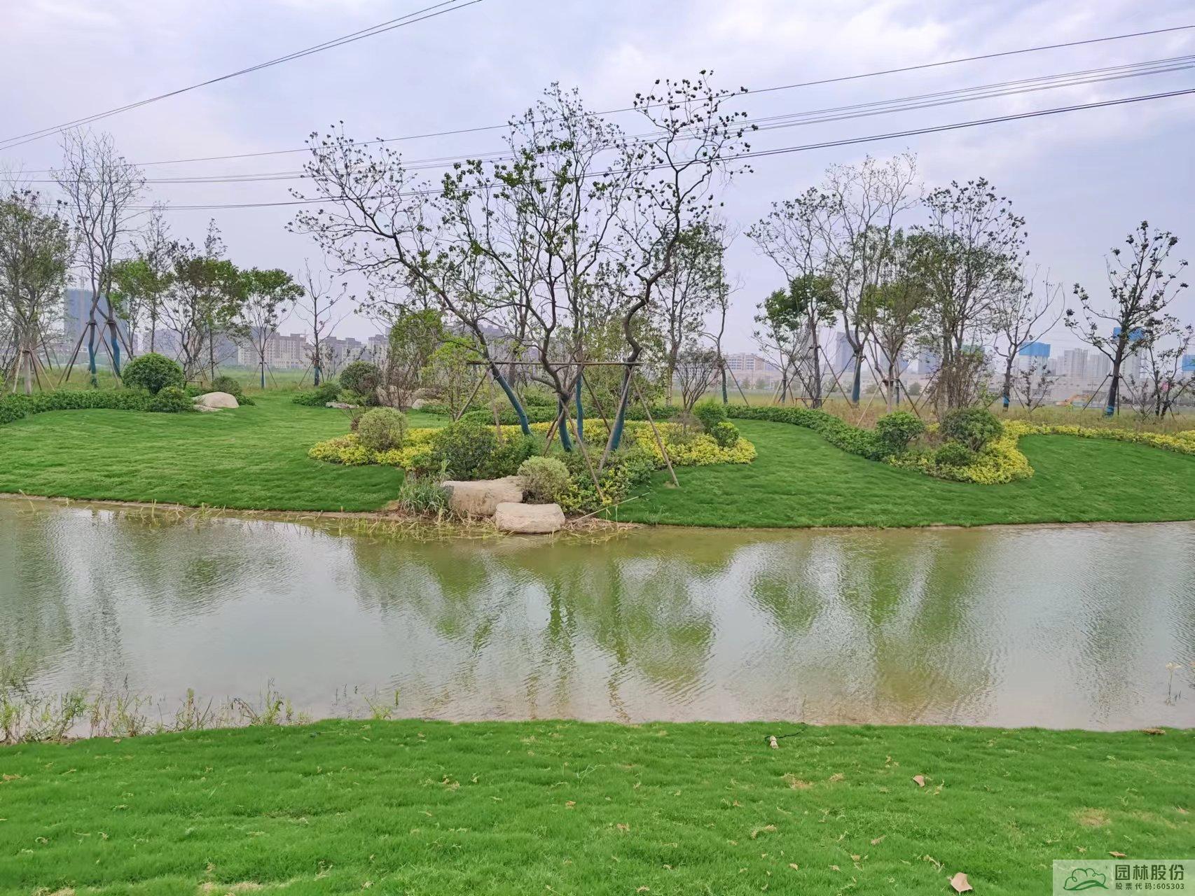 道路西侧带状公园内水系驳岸景观