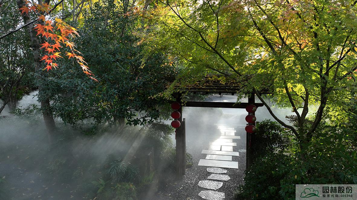 “无枫不成景”。无论是中式庭院、日式庭院,不管在水边、路边,红枫五彩缤纷的叶色,如大自然的调色盘,渲染出画境园的初冬。