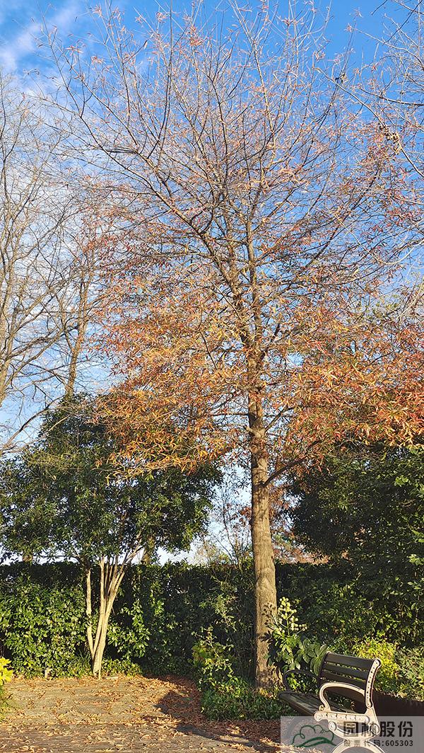 在初冬的日子里,怎能少了水杉、池杉、水松这类落叶针叶树呢。远看,褐色的枝叶、竖向的线条,满满的都是初冬的静谧。如果在林下的园路穿梭,还能看到细细密密的落叶洒满林间,丝丝缕缕的阳光洒落进来,好希望时间一直停留在这一刻。