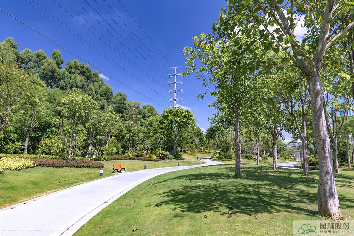凤举路(光源四路至光明大道段)绿化景观提升项目位于深圳市光明区凤凰街道,南靠龙大高速,中部与创投路相交,临近龙大高速一侧现有绿化隔离带。项目建成后,集南国风光的大气与江南园林的秀美与一体,地势起伏有致,植物合理搭配,既有开阔通透的园路,也有曲径通幽的竹林;旱溪蜿蜒灵动,生态功能与景观功能共存,原木连廊亭榭,自然与艺术融合,塑石假山与堆坡造型相得益彰,人入其中,步移景异,让人流连忘返,舒适愉悦。