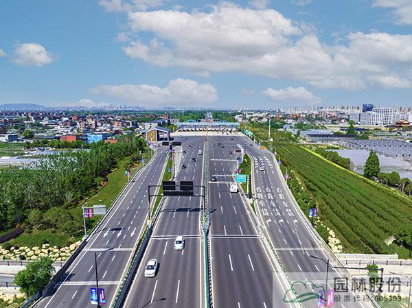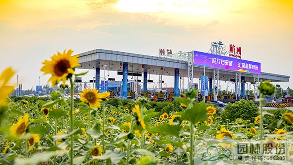 项目采用江南园林自然式组团配置造园手法,通过竖向堆土形成立体空间,以银杏、黄山栾树等乡土树种为背景基调,丹桂、紫薇及球类构成前景,针形、卵形、帚型植物之间相互衬托。结合杭州亚运特色,以立体绿雕塑、亚运吉祥物、时花布置、道旗装饰、收费站门楼及收费亭、公安检查站、花箱等多种展现形式,呈现“绿色亚运理念”,展现共赢金银铜牌,共享绿色盛会,共赏钱江潮涌。