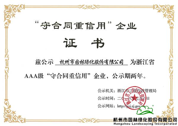 浙江省AAA级“守合同重信用”企业